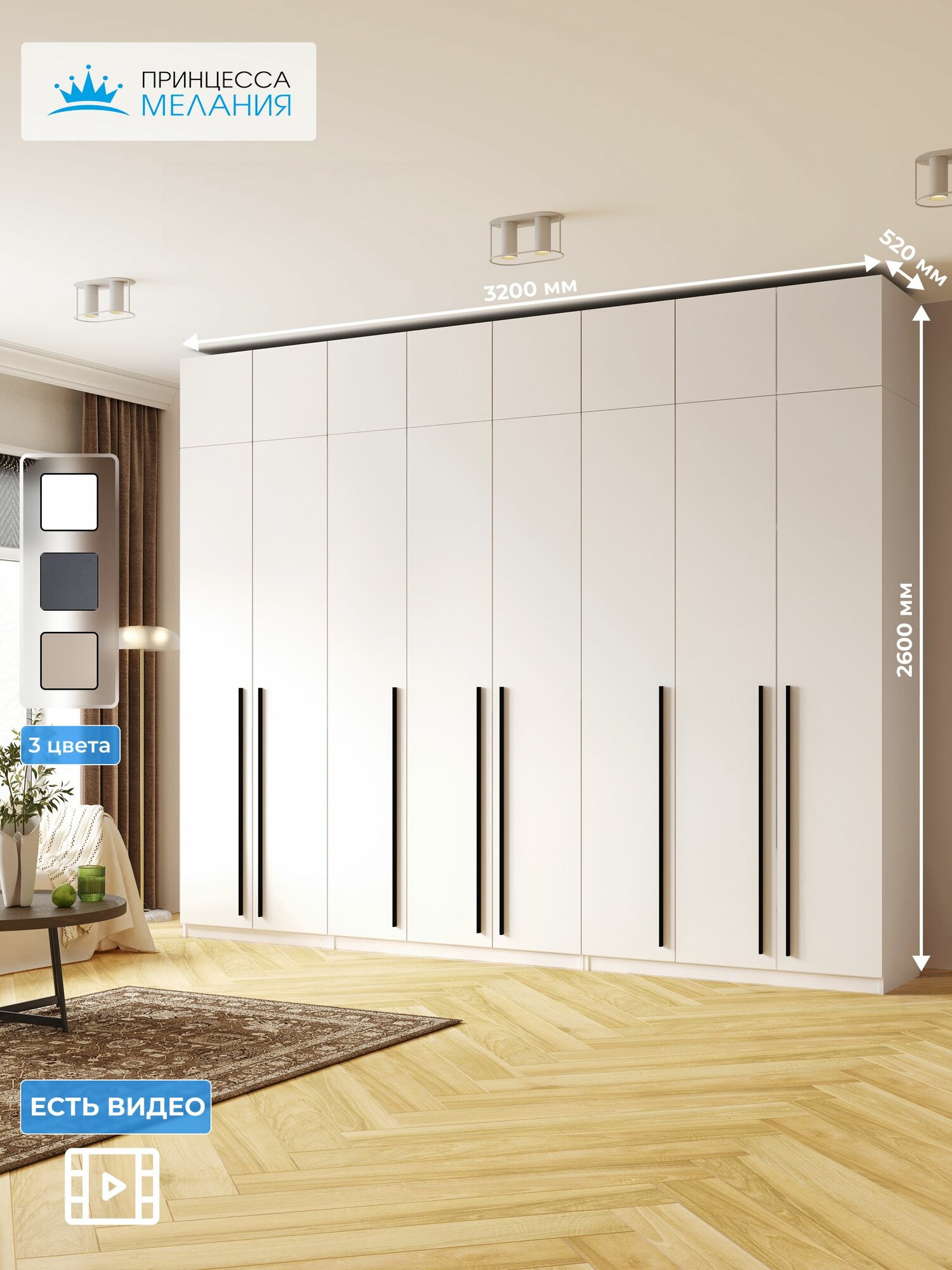Шкаф для одежды распашной, 8-ми дверный с антресолью, Белый, 2600х3200х520 мм: сравнение цен, характеристики, фото, актуальное наличие и цены.
