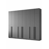 Габариты шкафа — 2600 на 3200 на 520 мм, что делает его достаточно высокопросторным для обширной коллекции одежды. При этом дизайн шкафа остается легким и ненавязчивым, что позволяет ему гармонично сочетаться с другими элементами мебели в комнате.