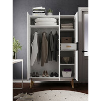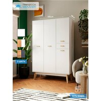 Сочетание белого цвета и стильных декоративных ручек из натурального дерева придают этому шкафу элегантный вид, который отлично впишется в любой интерьер. Высокие ножки добавляют легкости и создают ощущение простора в помещении.