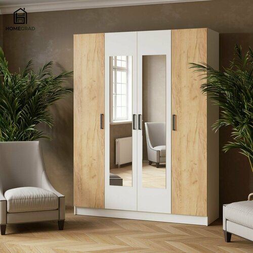 Шкаф для одежды распашной Lars 1600 с зеркалом, белый/дуб крафт золотой: сравнение цен, характеристики, фото, актуальное наличие и цены.