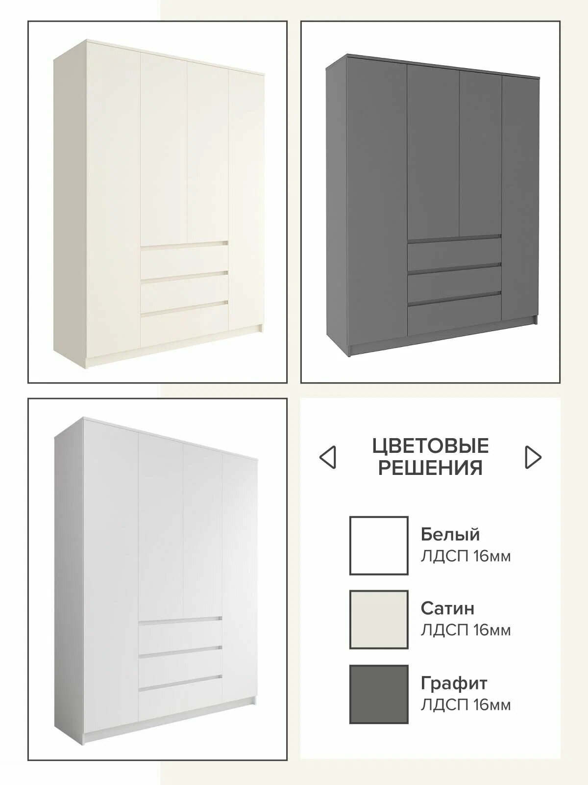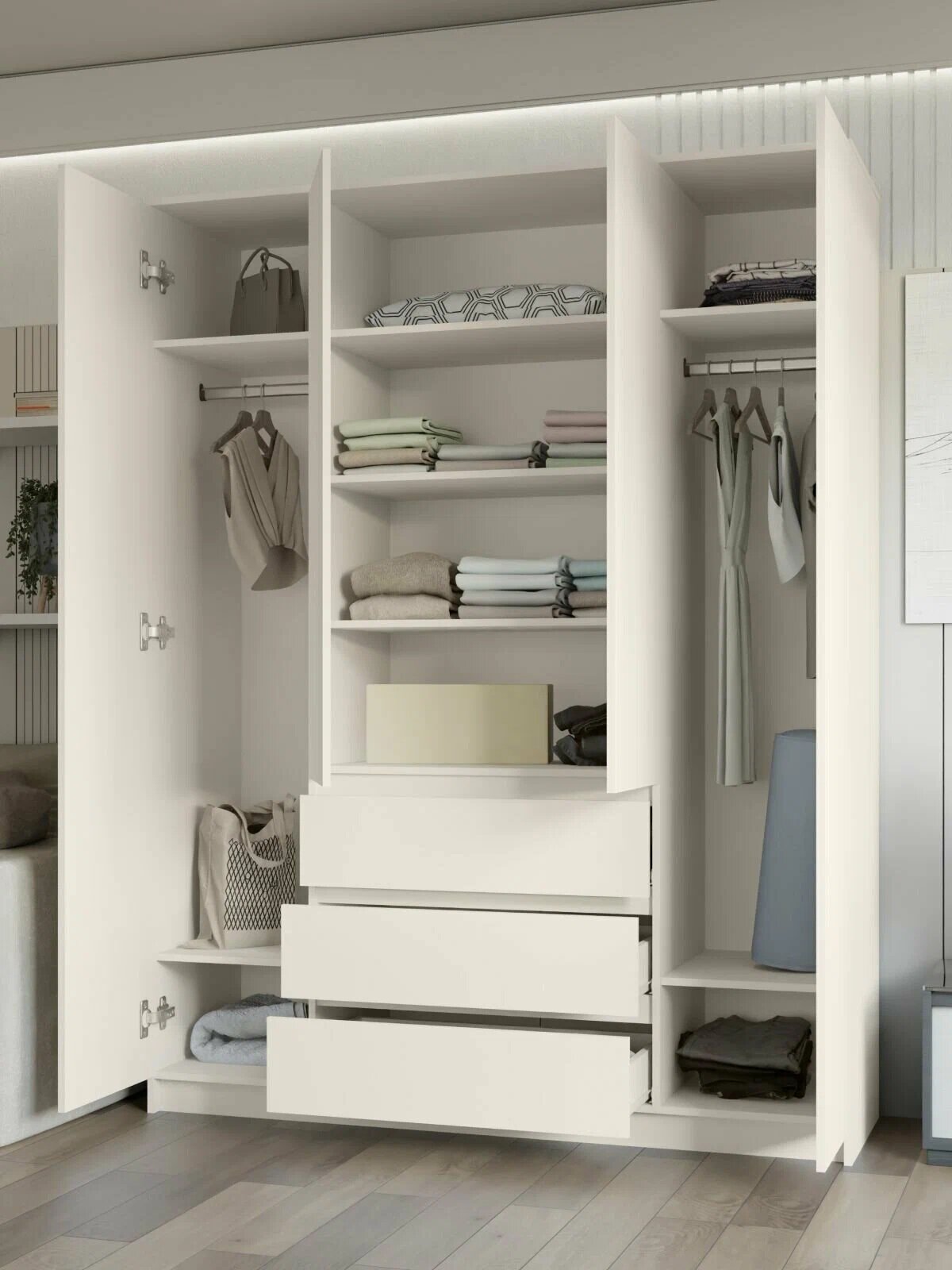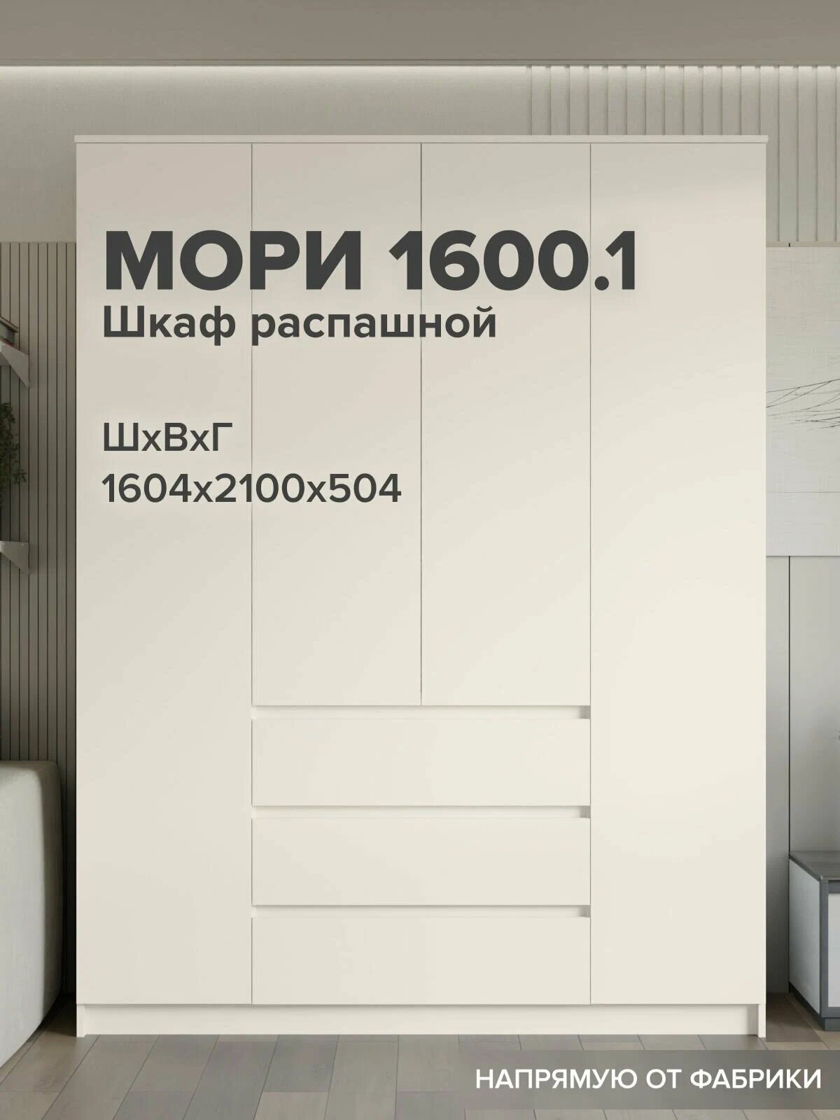 Шкаф Мори МШ 1600.1 — это компактный, но при этом многофункциональный шкаф современного дизайна, который подойдёт для хранения одежды, белья и различных предметов в спальне, прихожей, детской или гостиной. Корпус и фасады выполнены из прочной и износостойкой ЛДСП, обеспечивающей надёжность конструкции и простой уход. Внутреннее пространство шкафа организовано максимально удобно: в центральной части располагаются широкие и глубокие полки, идеально подходящие для хранения сложенной одежды, полотенец, коробок и других предметов. В нижней части находятся два выдвижных ящика на роликовых направляющих, которые отлично подойдут для текстиля, постельного белья или аксессуаров. Сбоку расположена закрытая секция с полками и хромированной штангой овального сечения для плечиков, где удобно размещать верхнюю одежду, платья, костюмы и рубашки. Боковая дверца открывается с помощью современной системы PUSH-TO-OPEN — достаточно лёгкого нажатия, чтобы открыть створку, благодаря чему шкаф выглядит аккуратно и стильно, без выступающих ручек. Такая система особенно удобна для интерьеров в стиле минимализм или сканди. Шкаф Мори МШ 1600.1 — это идеальный выбор для тех, кто ищет современный шкаф без ручек, шкаф с ящиками и полками, шкаф с штангой, удобный шкаф из ЛДСП для хранения вещей. Компактный по размеру, но вместительный по функциональности, он подойдёт как для небольшой квартиры, так и для дачи или офиса, оставаясь стильным и практичным решением на каждый день.