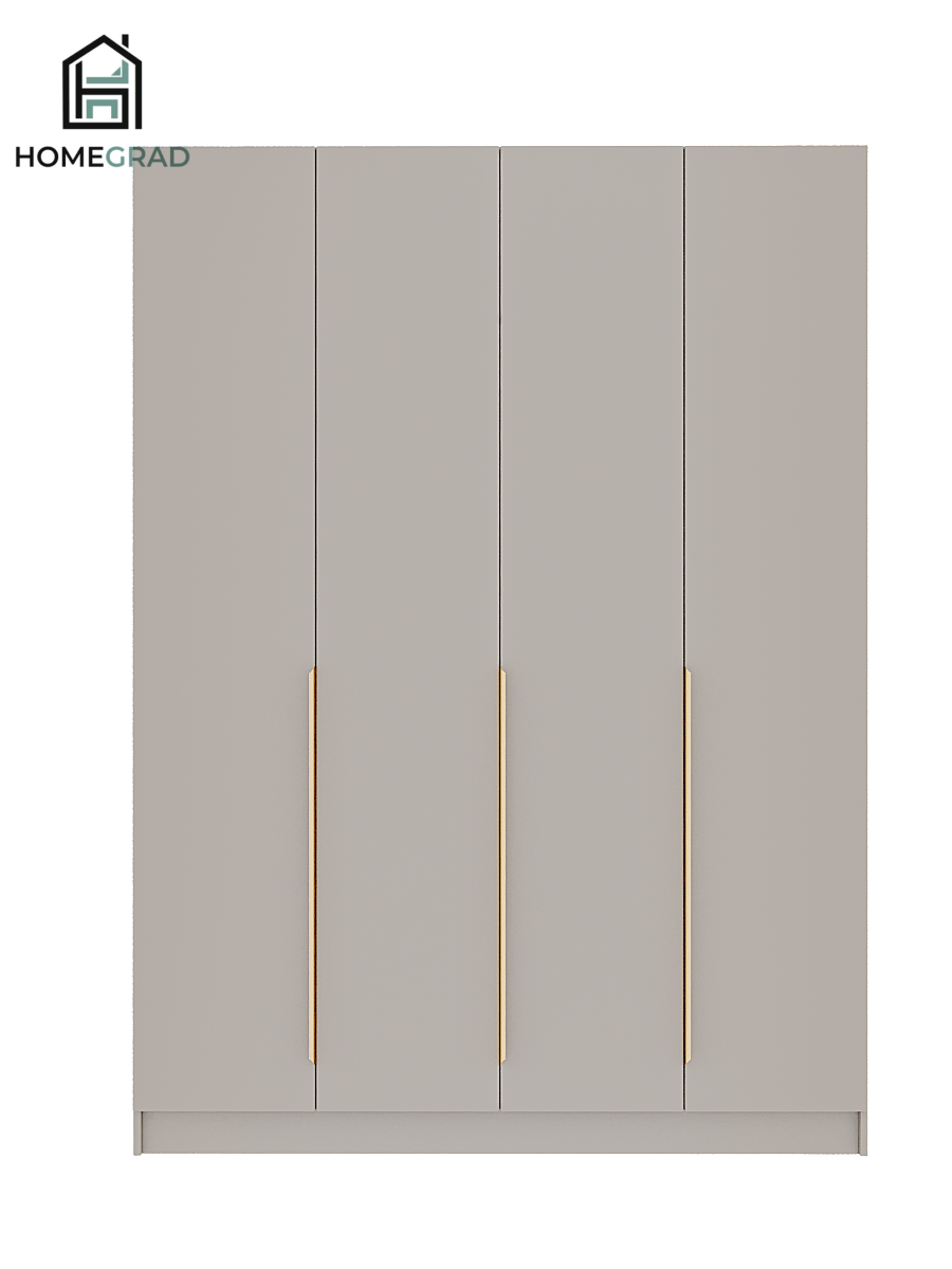 Шкаф оснащен четырьмя распашными дверями, открывающимися в стороны, и девятью полками для удобного размещения одежды, обуви и аксессуаров. Вместительное отделение со штангой для вешалок позволяет хранить одежду на плечиках, а накладные удлиненные ручки добавляют оригинальности простому дизайну.