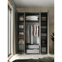 Шкаф оборудован вместительными ящиками, которые отлично подойдут для хранения различных аксессуаров, обуви или постельного белья. Большие распашные двери обеспечивают удобный доступ к одежде, а также позволяют видеть все ваши вещи сразу, что делает выбор наряда более быстрым и легким.