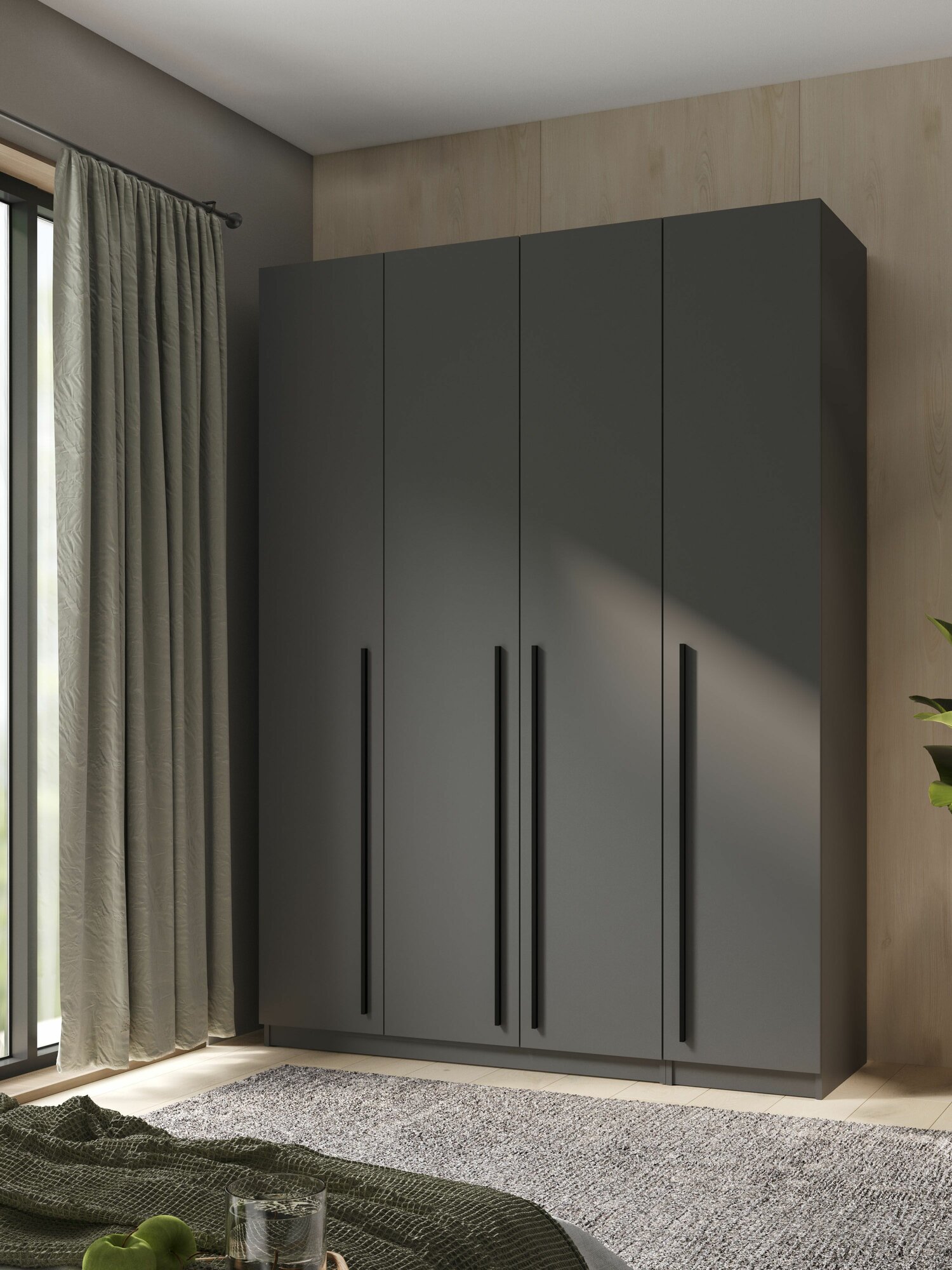 Представляем вашему вниманию четырехдверный распашной шкаф для одежды "Принцесса Мелания", выполненный в стильном графитовом цвете. Этот шкаф станет идеальным дополнением как в прихожую, так и в спальню или детскую. С его помощью вы сможете эффективно организовать пространство, сохраняя ваши вещи в порядке и доступности.