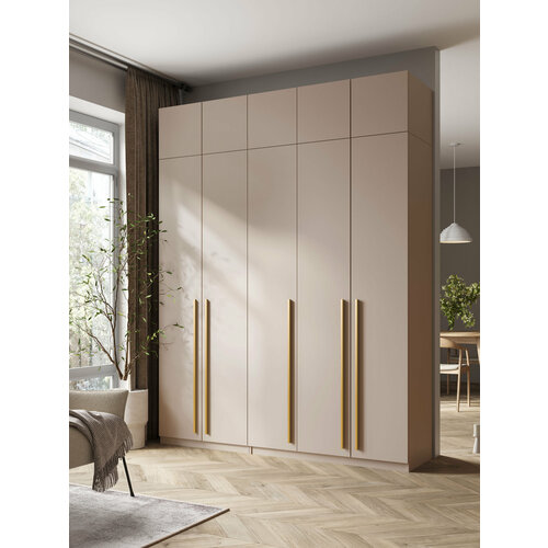 Шкаф для одежды в цвете кашемир с золотыми ручками "Принцесса Мелания" - это идеальное решение для тех, кто хочет иметь удобное место для хранения своих вещей. Этот шкаф с золотыми ручками имеет пять дверей, которые открываются в стороны, что позволяет легко получить доступ ко всем элементам внутри. Кроме того, он оснащен антресолью, которая поможет вам максимально эффективно использовать пространство.
