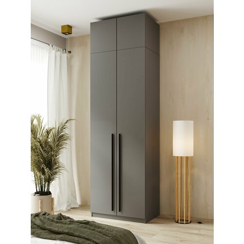 Этот двухдверный шкаф идеально подходит для прихожей, спальни или детской комнаты. Он также станет прекрасным дополнением для гостиной, где вы можете хранить не только одежду, но и различные принадлежности. Нейтральный графитовый оттенок легко вписывается в разнообразные стили интерьера, от современного до классического.