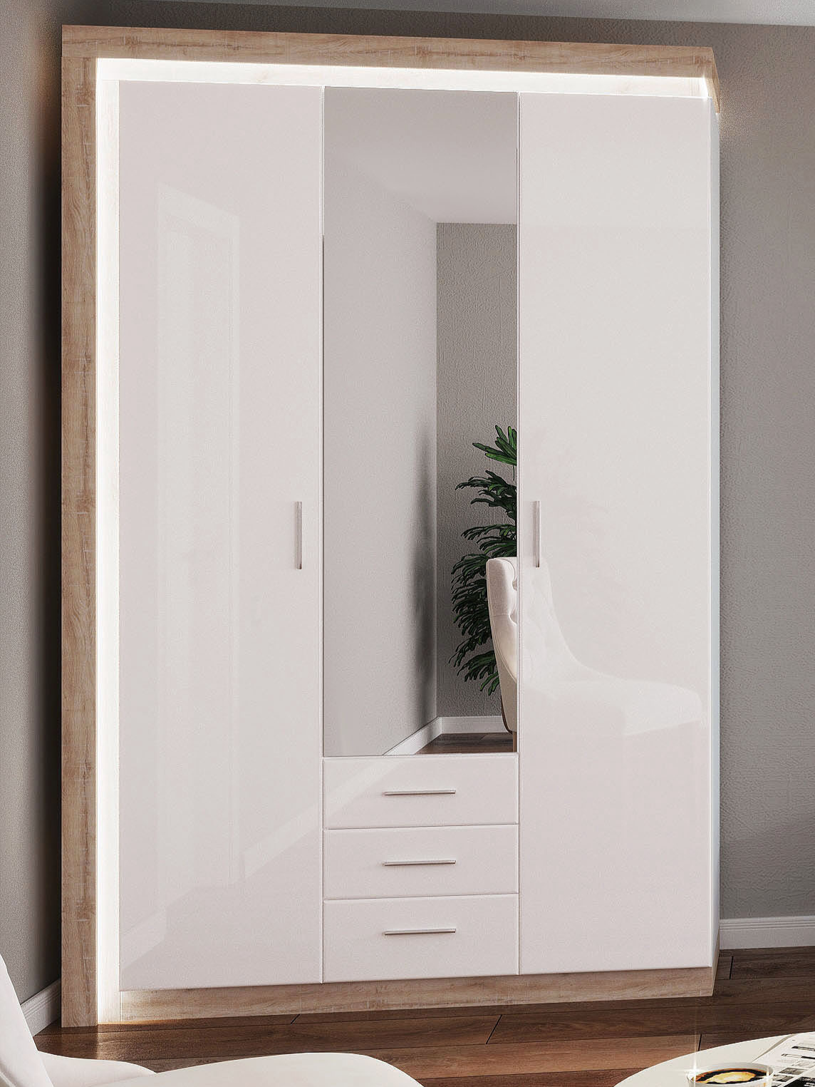 Купить Шкаф для одежды распашной с зеркалом Шкаф в прихожую для одежды с ящиками 3-х дверный с доставкой по всей России.