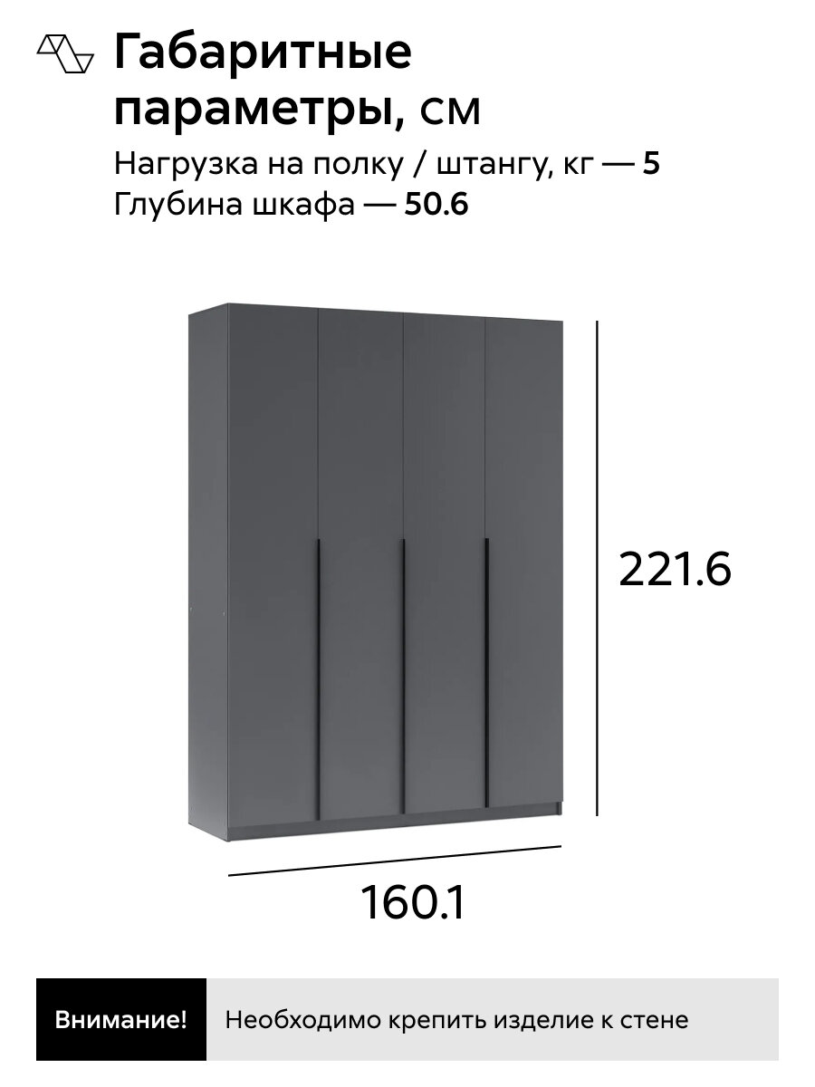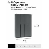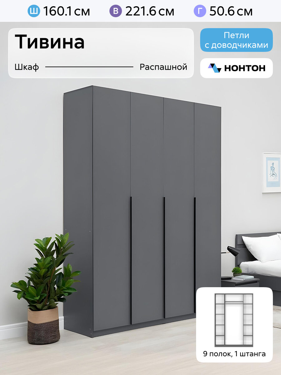 Шкаф для одежды распашной Нонтон Тивина, 160 см, 9 полок и штанга, графит серый: сравнение цен, характеристики, фото, актуальное наличие и цены.
