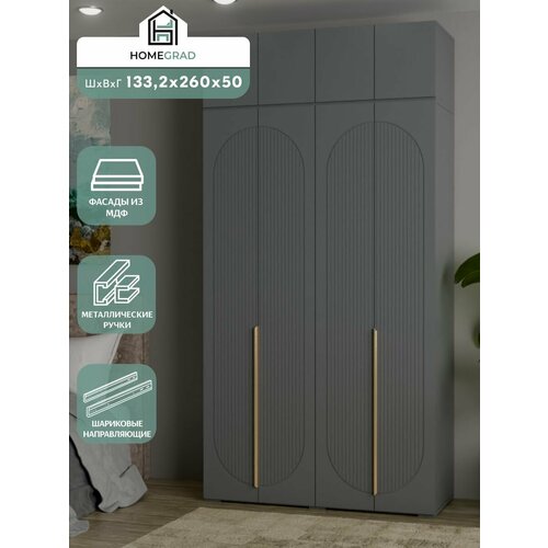 Шкаф Fiesta 133 см в цвете графит с фасадами из МДФ и корпусом из прочного ЛДСП – идеальное решение для организации хранения в спальне или прихожей. Этот вместительный распашной шкаф с габаритами 133,2х220×50 см (260 см с антресолью) предлагает оптимальное сочетание элегантного дизайна и практичной функциональности.
