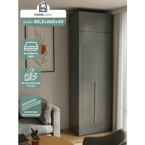 Глубина 50 см оптимальна для размещения плечиков с одеждой, а высота 260 см с антресолью делает этот гардероб заметным элементом интерьера.