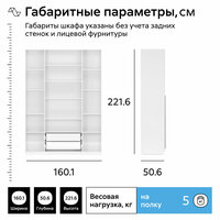 Шкаф для одежды распашной Нонтон Луас, 160 см, 13 полок и 2 ящика, белый глянец: сравнение цен, характеристики, фото, актуальное наличие и цены.