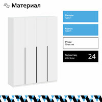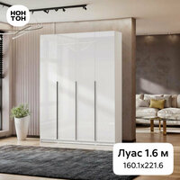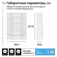 Этот шкаф четырехстворчатый имеет ширину 160.1 см и высоту 221.6 см, что позволяет разместить в нем большое количество вещей. При этом глубина составляет 50.6 см, это обеспечивает достаточное пространство для хранения вещей.