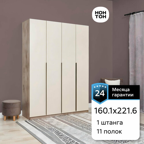 Этот шкаф четырехстворчатый имеет ширину 160.1 см и высоту 221.6 см, что позволяет разместить в нем большое количество вещей. При этом глубина составляет 50.6 см, это обеспечивает достаточное пространство для хранения вещей.