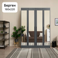 Шкаф для одежды Нонтон Берген, 160х52х220 см, 4 зеркала, серый графит