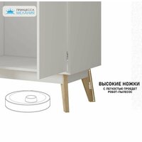 Белый цвет корпуса и фасада делает этот шкаф универсальным решением для любого интерьера. Декоративные деревянные ручки добавляют изысканности и завершенности образу мебели. Шкаф на ножках создает ощущение легкости конструкции, а матовая отделка придает ему элегантность.