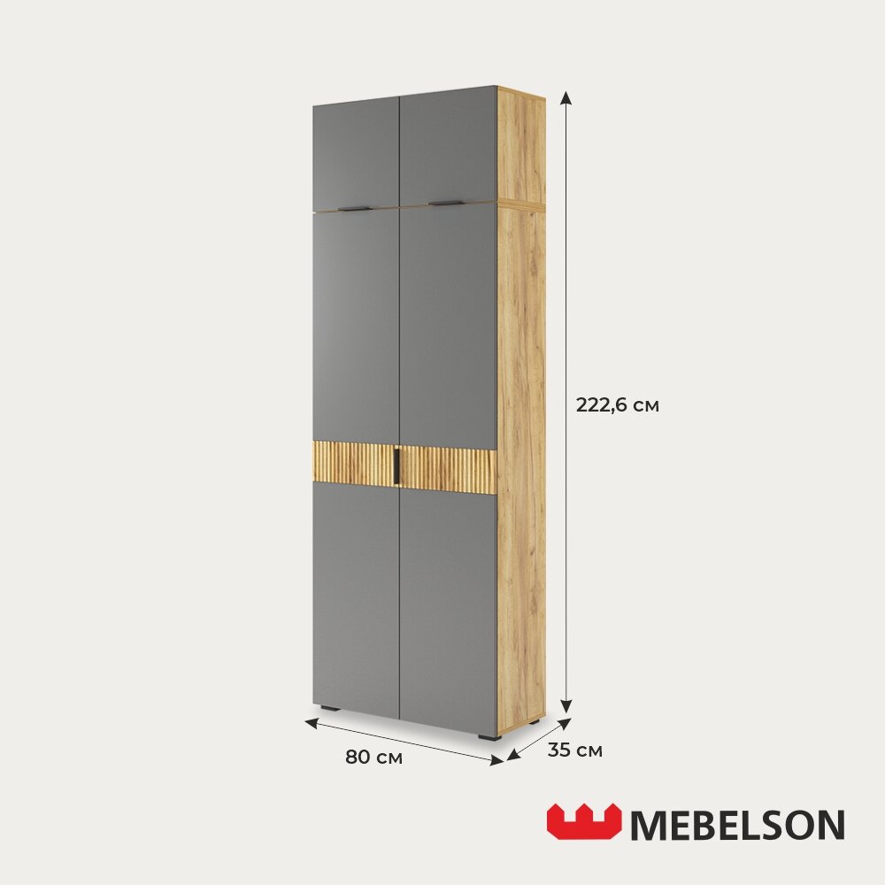 Шкаф имеет следующие размеры: высота - 222.6 см, ширина - 80.0 см, глубина - 35 см. Это позволяет разместить в нем большое количество одежды и аксессуаров.