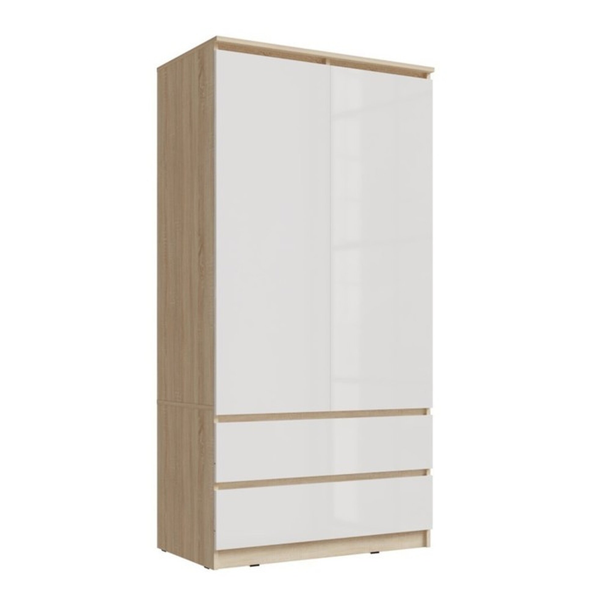 Купить Шкаф двухстворчатый с ящиками Челси, 902х514х1796, Белый глянец/Дуб Сонома с доставкой по всей России.