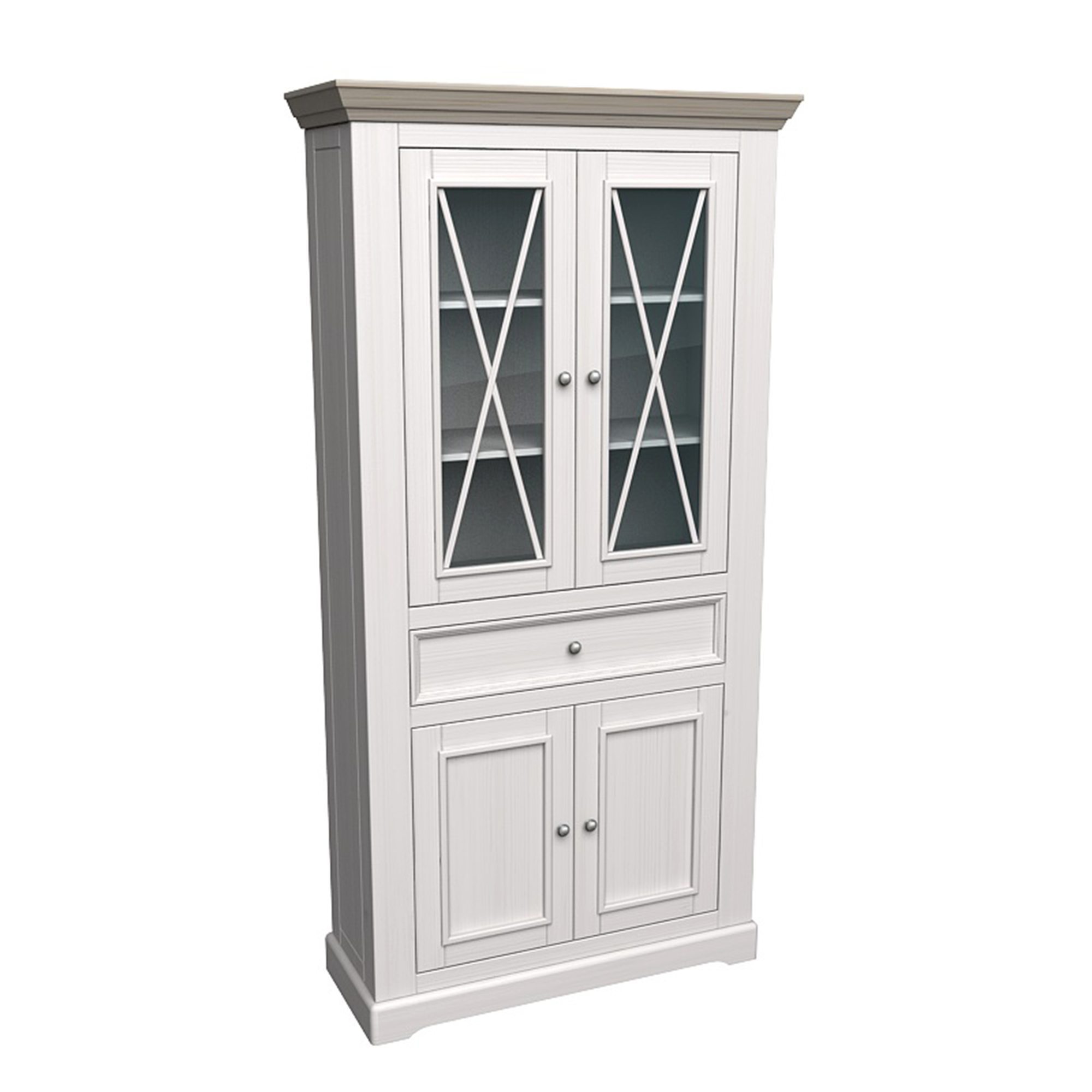 Купить Шкаф «Фламберже» для посуды, гостинной, натуральное дерево, массив сосны, 108х42х213 см. цвет- белый воск/антрацит с доставкой по всей России.