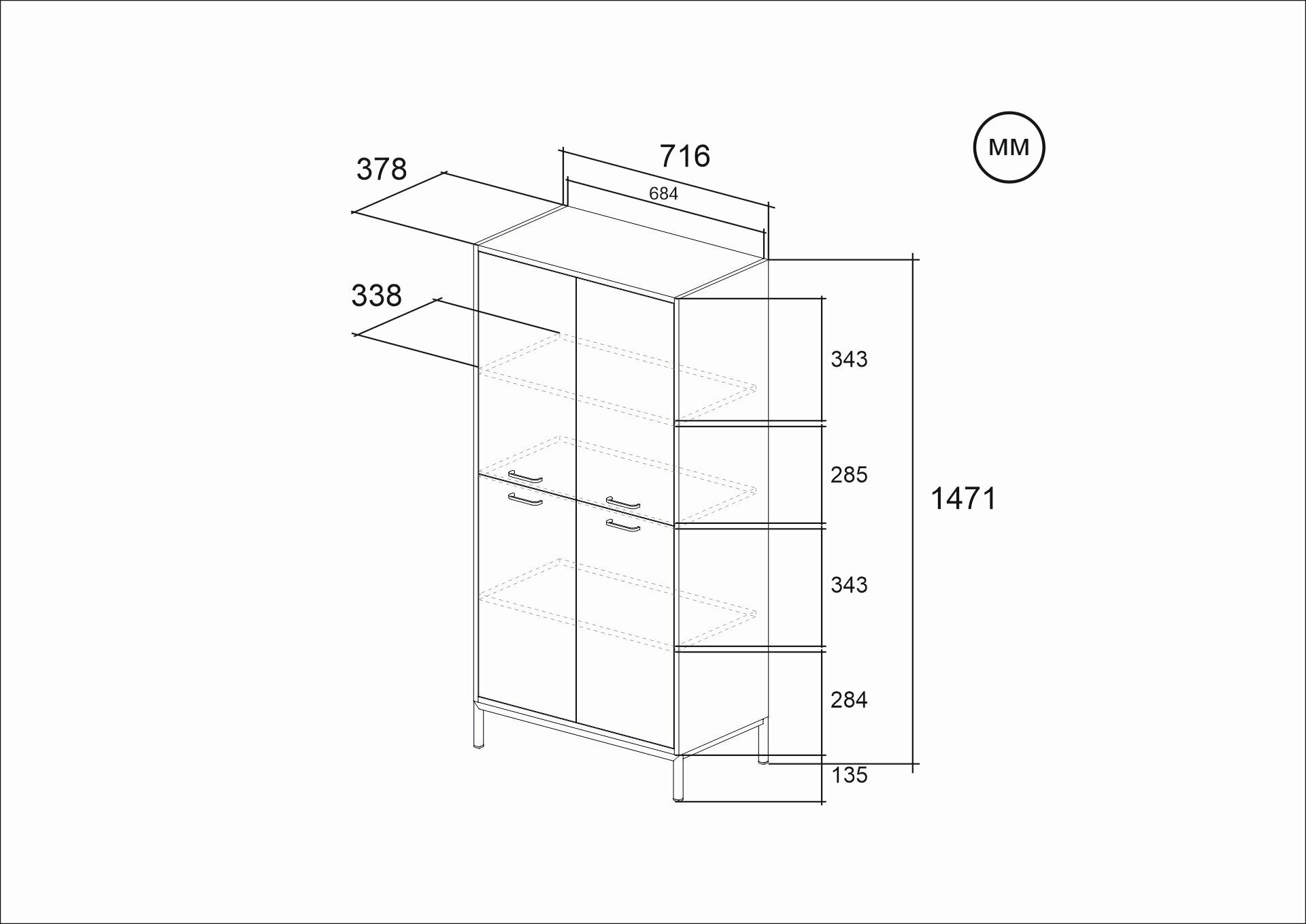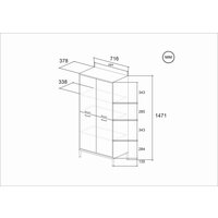 Каркас и фасады шкафа Gloss (72х38х147) сделаны из ДСП 16 мм, облицованной видимой кромочной лентой ПВХ 1 мм и невидимой бумажной 0,5 мм. Часть полок регулируется по высоте. Петли без доводчиков. Предусмотрено крепление шкафа к стене при помощи металлических уголков. Во избежание деформации пола шкаф оснащен войлочными подпятниками на клеевой основе.