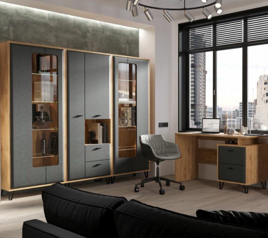 - Фасад: Дверь, панель ящика – плита МДФ односторонне лакированная облицованная пленкой ПВХ. Цвет плиты МДФ – Белый. Цвет пленки ПВХ – Графит.