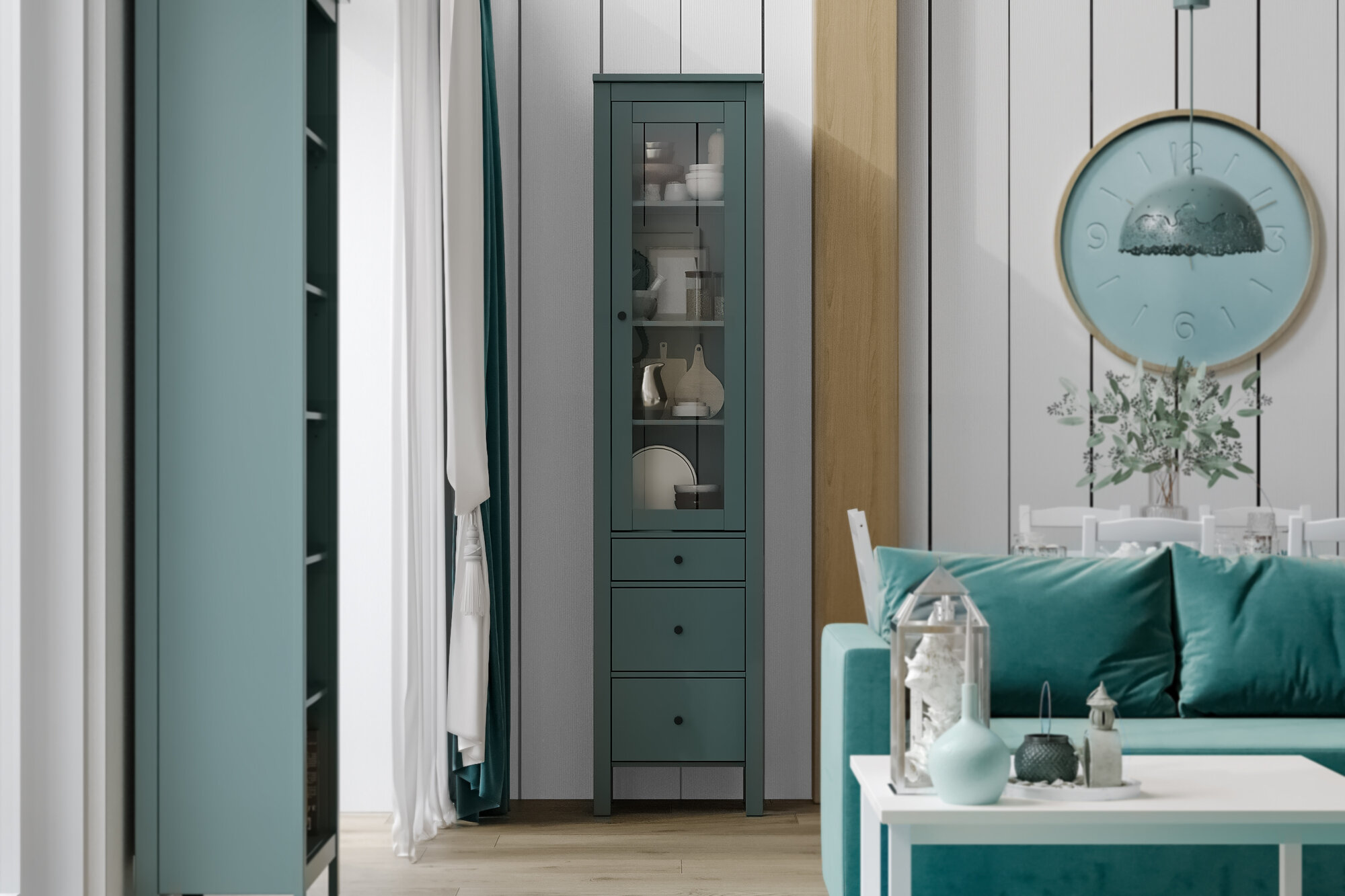 Шкаф с витриной ГУД лакк сага 50, 215.5 x 41.4 x 49.6 см, цвет: темно-бирюзовый: сравнение цен, характеристики, фото, актуальное наличие и цены.