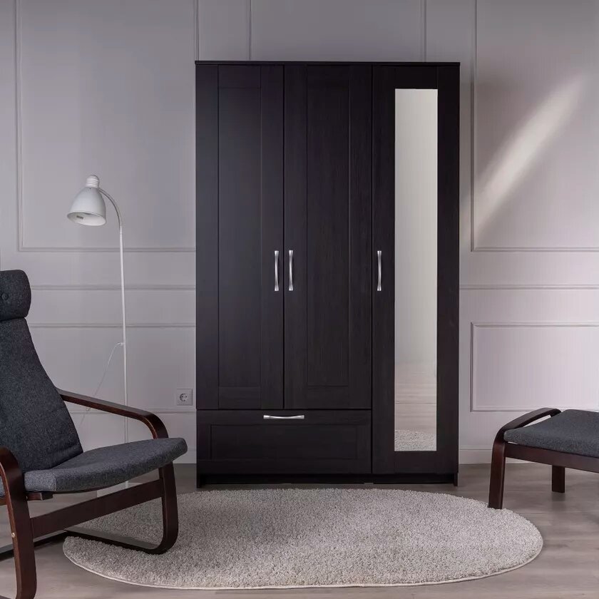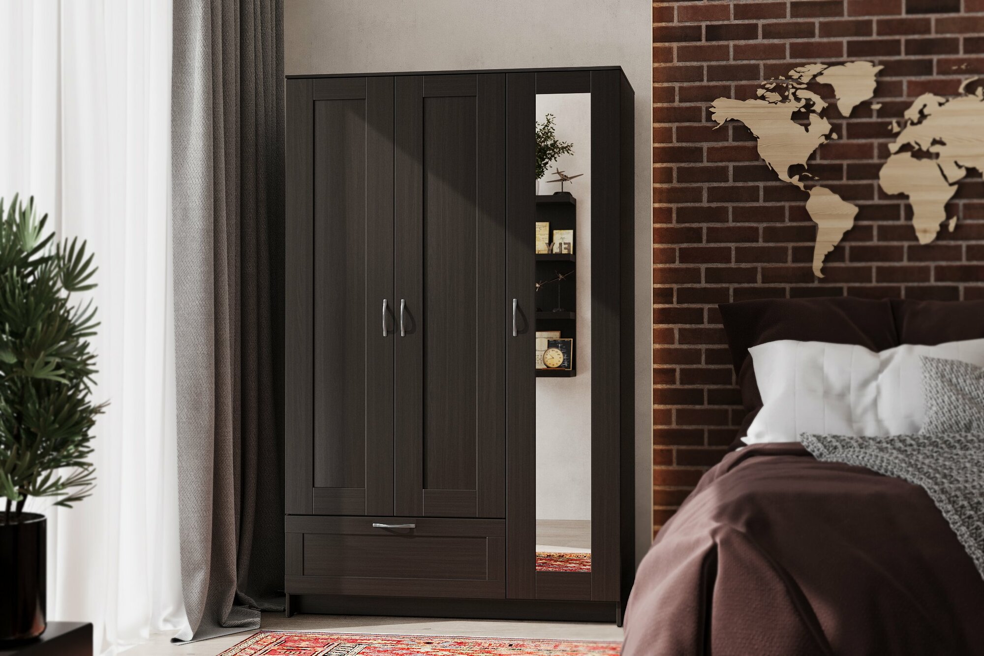 Шкаф распашной с зеркалом «Сириус», черно-коричневый, дуб венге, 3 двери и 1 ящик, 190 см х 117 см х 50 см: сравнение цен, характеристики, фото, актуальное наличие и цены.