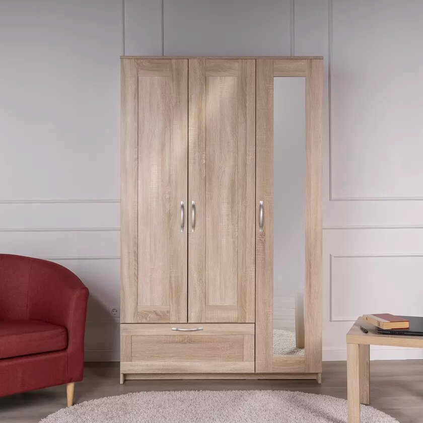 Шкаф распашной с зеркалом «Сириус», дуб сонома, 3 двери и 1 ящик, 190 см х 117 см х 50 см: сравнение цен, характеристики, фото, актуальное наличие и цены.