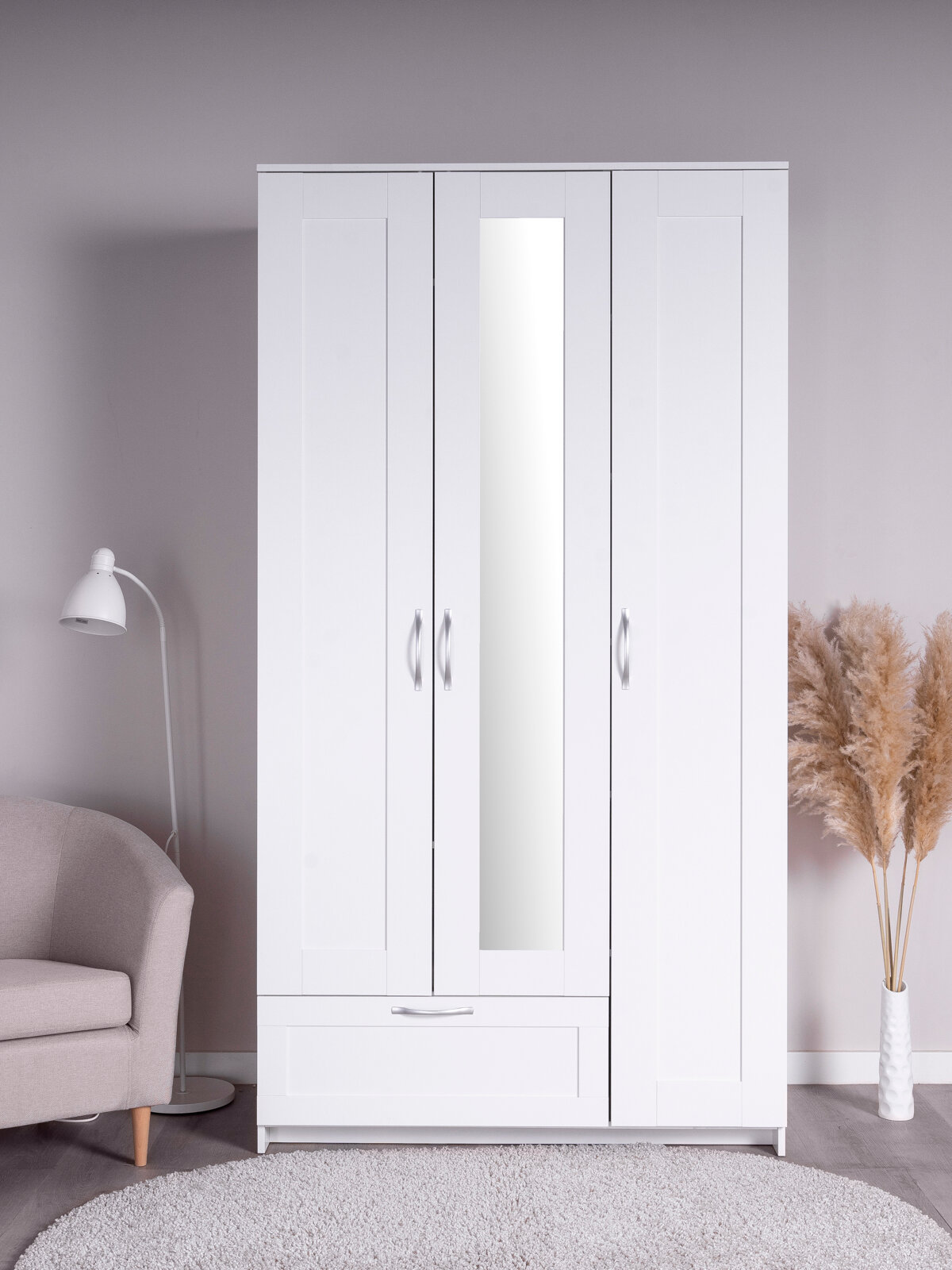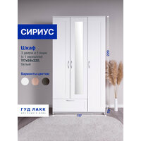 Шкаф распашной ГУД лакк Сириус, 3 двери и 1 ящик с зеркалом, 220х117х59 см, белый: сравнение цен, характеристики, фото, актуальное наличие и цены.