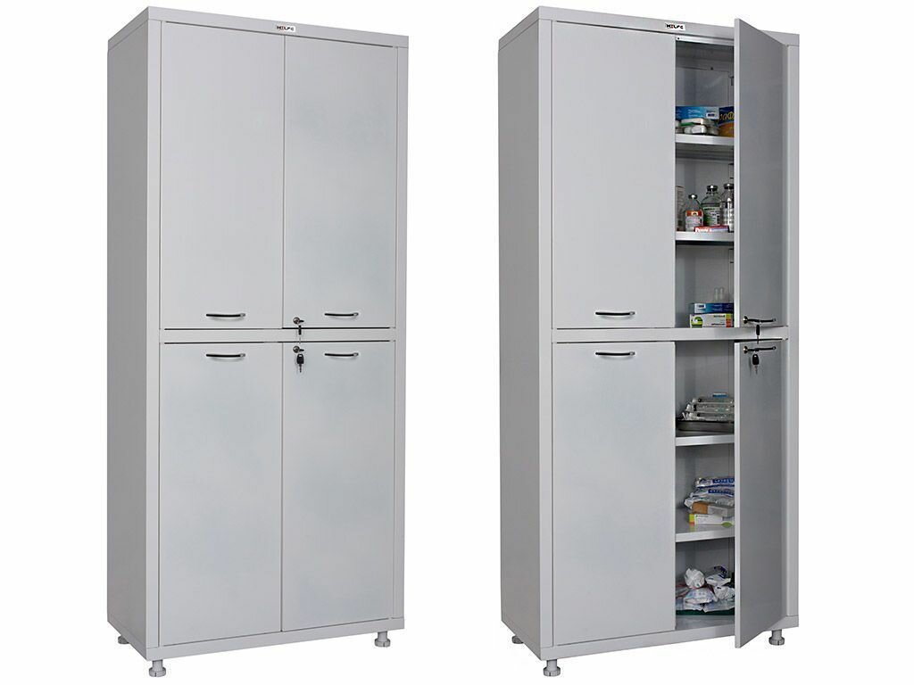 Шкаф медицинский HILFE МД 2 1780/SS, 4 дв. 800x400x1850 предназначен для хранения медикаментов, инструмента, перевязочного материала. Изготавливается из высококачественной стали. Шкаф состоит из двух отделений, каждое из которых имеет распашные двери и запирается на замок. Комплектуется ключевыми замками Практик (1000 комбинаций). Шкаф комплектуется металлическими полками. Регулируемые опоры позволяют устанавливать шкаф на любой вид пола. Покрытие медицинского шкафа гигиенически безопасное, коррозийно-устойчивое. - тип материала корпуса - сталь 0.6мм - тип материала двери - сталь 0.7мм - количество замков - 2 - количество полок - 4 - нагрузка на полку - 30кг - количество дверей - 4 - тип покрытия - порошковое - цвет - белый Шкаф поставляется в разобранном виде. В комплекте 4 регулируемые опоры. Наличие регистрационного удостоверения росздравнадзора на медицинское изделие. Не облагается НДС.