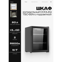 Купить Шкаф холодильный со стеклом COOLEQ TBC-65N с подсветкой, 60 л, 220 В с доставкой по всей России.