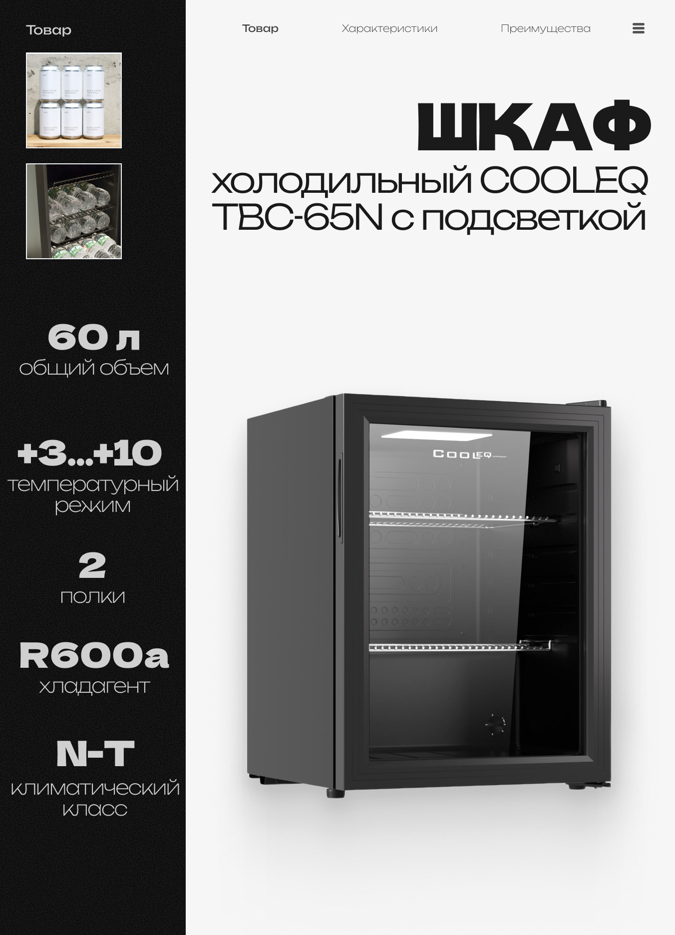 Шкаф холодильный со стеклом COOLEQ TBC-65N с подсветкой, 60 л, 220 В: сравнение цен, характеристики, фото, актуальное наличие и цены.