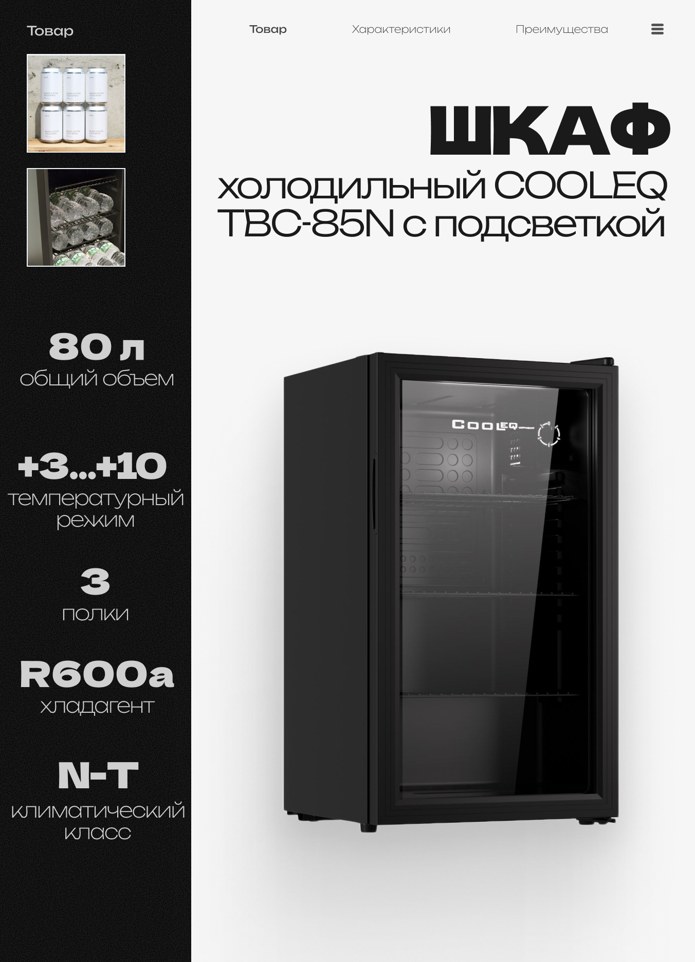 Шкаф холодильный со стеклом COOLEQ TBC-85N с подсветкой, 80 л, 220 В: сравнение цен, характеристики, фото, актуальное наличие и цены.