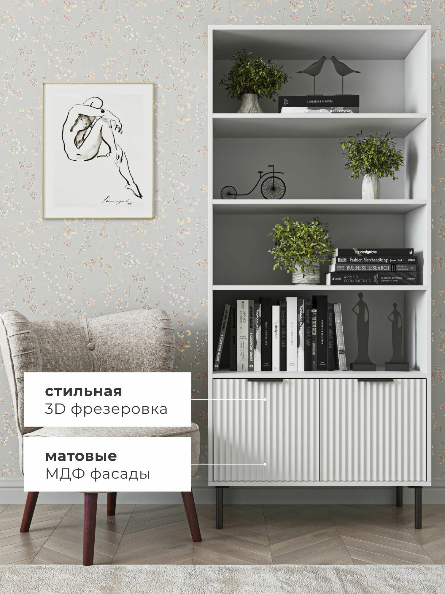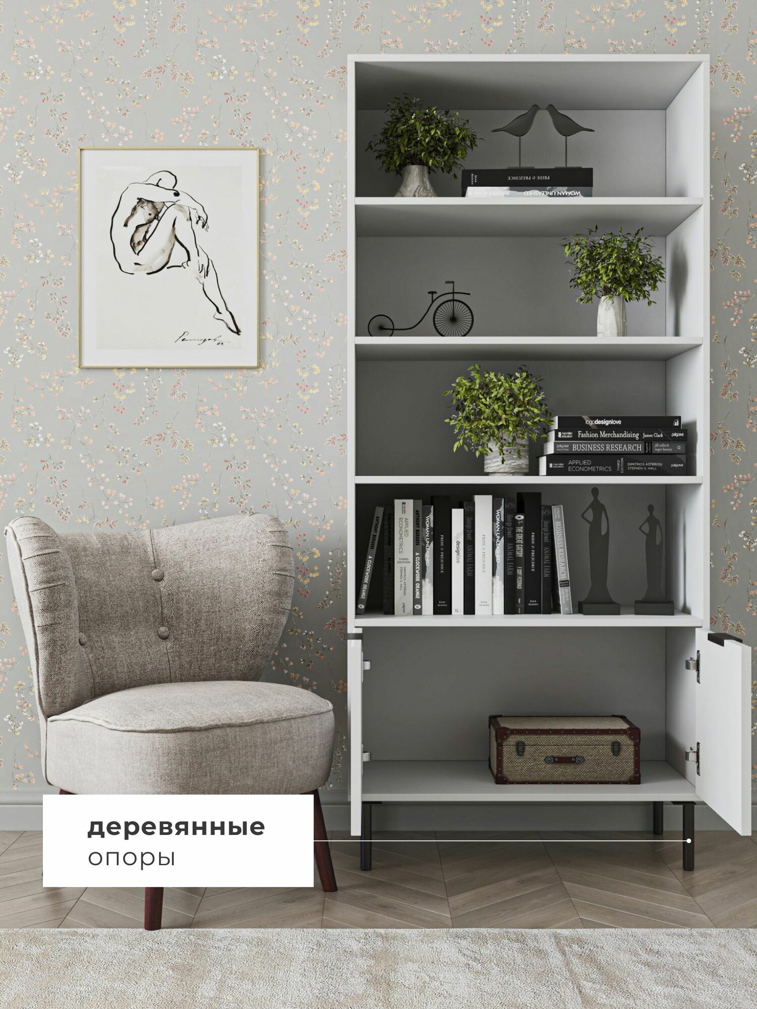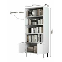 Шкаф книжный напольный на ножках BORDO Raenyra, 188*80*40 см, белый/черный: сравнение цен, характеристики, фото, актуальное наличие и цены.