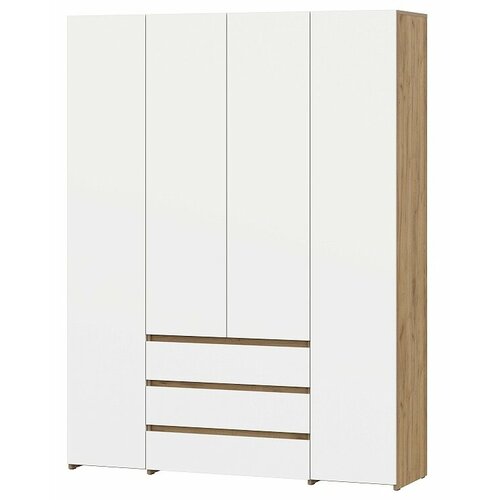 Шкаф Некст 1 — это просторная четырёхстворчатая конструкция, обеспечивающая достаточное место для хранения одежды, обуви и других предметов. Современный комбинированный дизайн в сочетании золотистого дуба и белого цвета делает шкаф стильным и универсальным решением для любого интерьера.