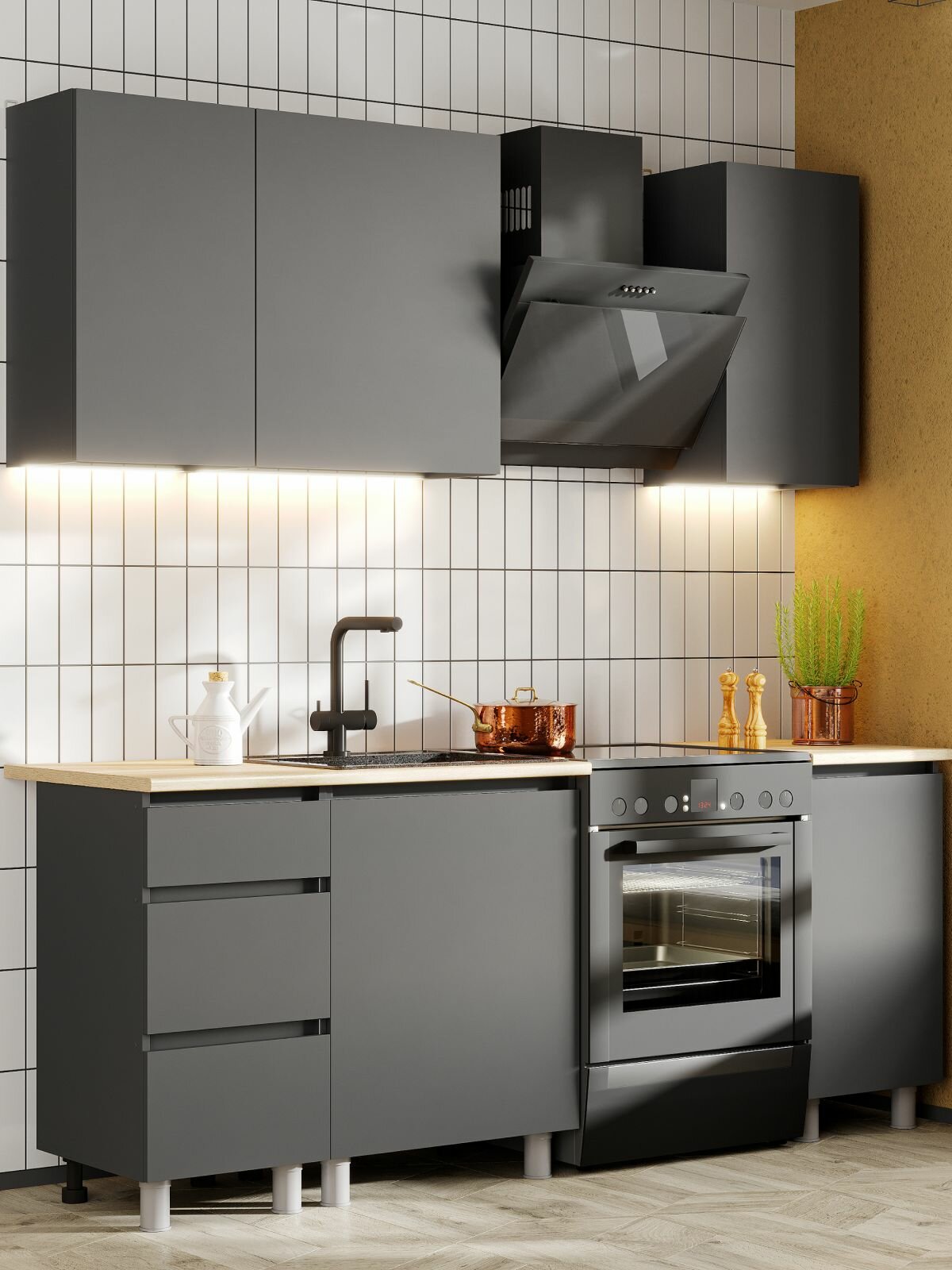 Кухонный модуль навесной антресольный Beneli Color, Черный графит/Белый, 45х57,6х36 см, 1 шт.
