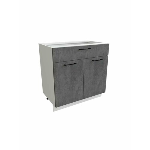 Внимание! Столешница В комплект НЕ входит! Шкаф кухонный напольный с 1 ящиком и 2 дверями 80 см для кухни Хелмер устанавливается на пол. Размеры: 816*800*478 мм. Цвет фасада: Бетон, цвет корпуса: Белый. Материал фасада: ЛДСП, материал корпуса: ЛДСП. Модульная мебель позволяет создавать функциональные и эстетичные пространства, отвечающие всем Вашим потребностям, сэкономить место, и идеально подходит для новостройки, дачи, в студию, однушку и двушку. Мы разработали коллекции с продуманным и дизайном, а разнообразие форм, размеров и цветов модулей позволит вам собрать готовый модульный гарнитур внутри карточки: навесные и напольные, вертикальные и горизонтальные, глубокие и узкие, прямые, угловые и торцевые, шкафы для вытяжки, тумбы для мойки, посудомойки и варочной панели, пеналы для духовки, микроволновки, кофемашины и другой встраиваемой техники, бутылочницы. При установке сушилки можно использовать для посуды, для хранения кухонных принадлежностей, продуктов, заготовок и консервов. Подойдет для размещения на кухне, и будет смотреться уместно в любом интерьере. Поставляется в разобранном виде. Комплект: глухие фасады, петли с доводчиками, роликовые направляющие.