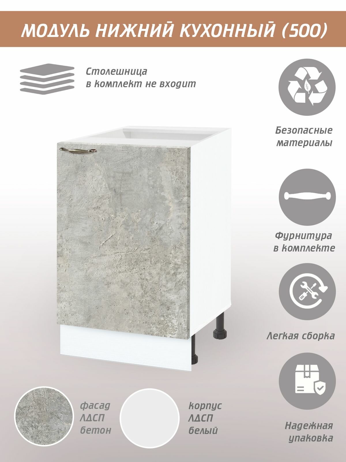 Купить Шкаф кухонный напольный 50 см, цвет бетон, дверка универсальная (правая/левая) с доставкой по всей России.