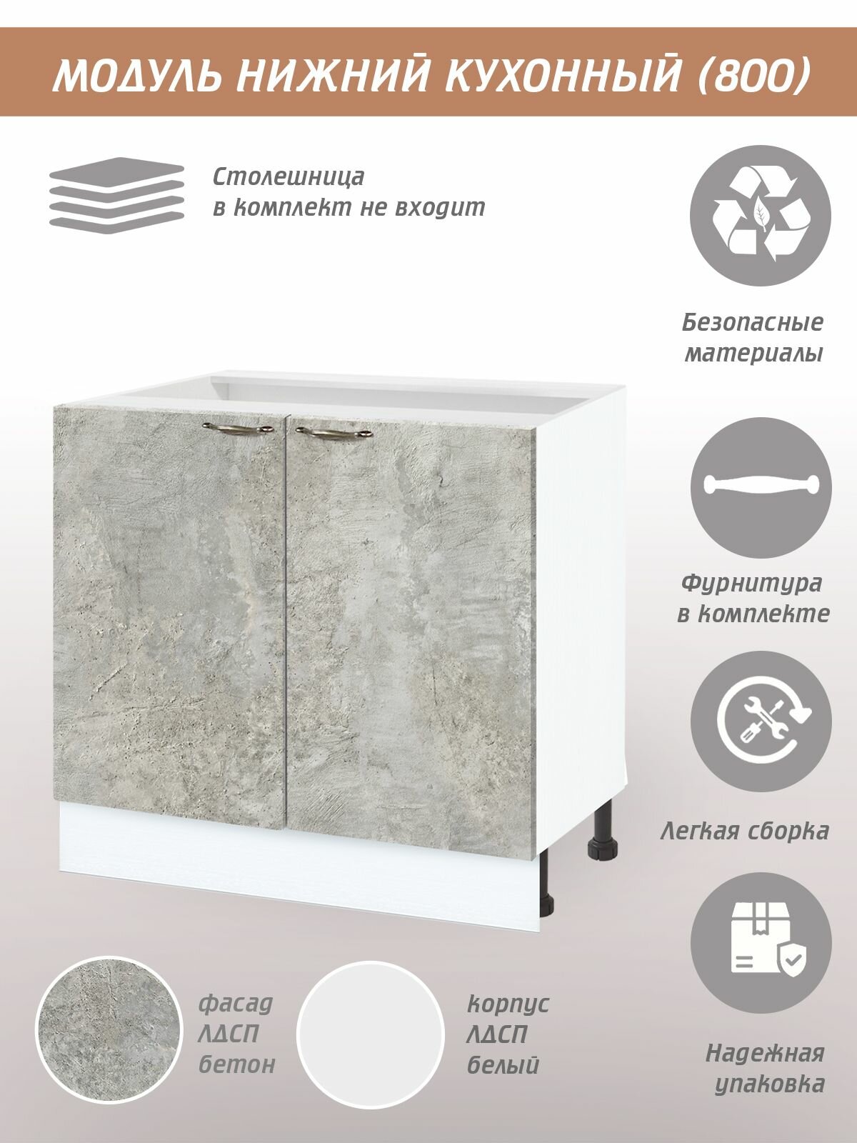 Шкаф кухонный напольный 80 см. с дверцами , цвет бетон, ножки регулируются: сравнение цен, характеристики, фото, актуальное наличие и цены.