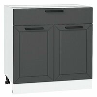 Без столешницы. Кухонный напольный шкаф 80 см. Фасады изготовлены из МДФ с покрытием ПВХ пленкой исключительной серии «Soft-touch» (особая шелковистая гладкая текстура без отпечатков). Покрытие имеет повышенную стойкость к истиранию и не деформируется при температурных перепадах. Глубина шкафа 478 мм, что позволяет провести за этой мебелью водопроводные коммуникации. В комплект входит: корпус, дверки, ручки, фурнитура, телескопические шариковые направляющие полного выдвижения и цоколь. Столешница в комплект не входит. Наша продукция имеет сертификаты качества, очень хорошо упакована и дополнена простой инструкцией по сборке.