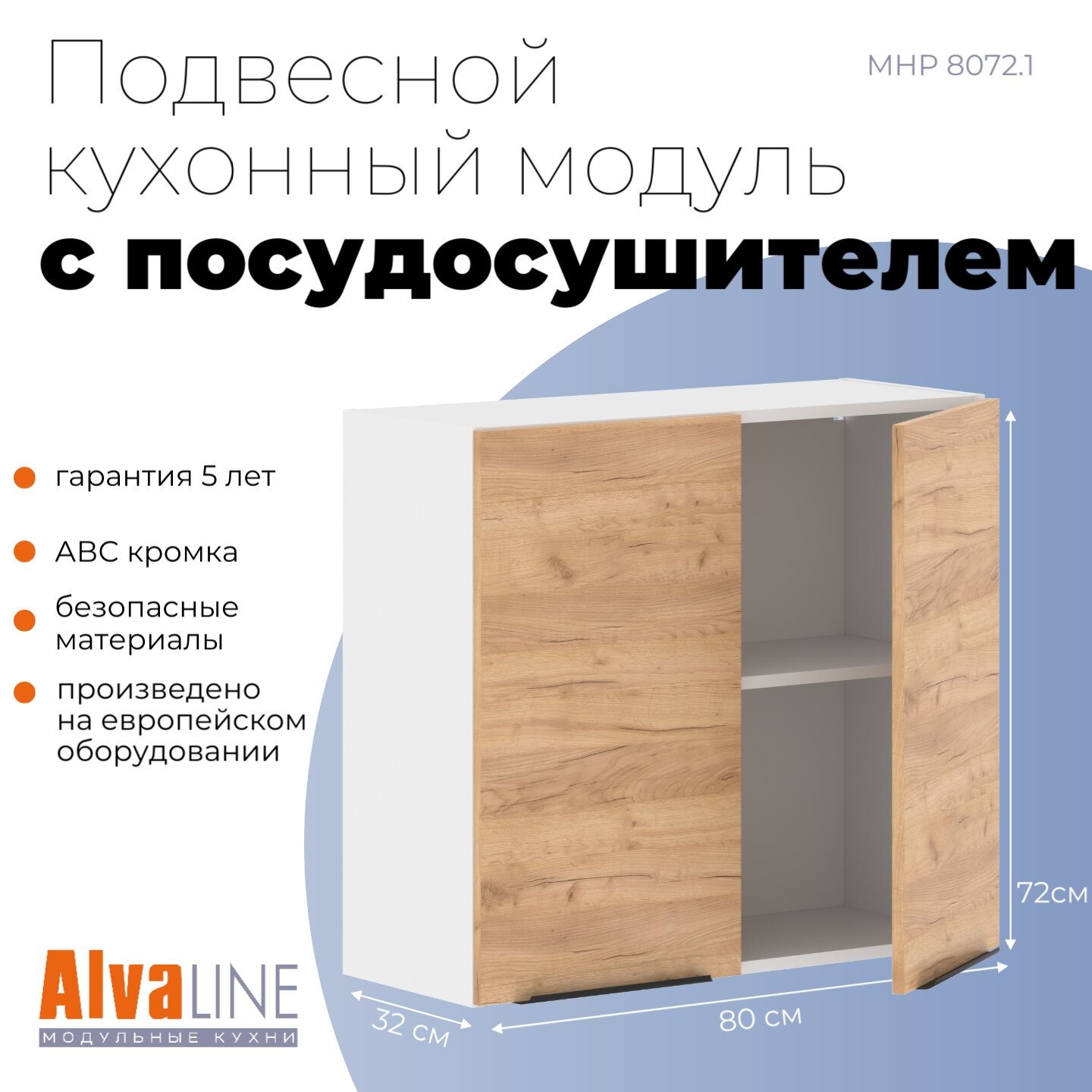 Шкаф кухонный навесной с полкой ALVALINE CORSICA MHP 8072.1A, дуб бофорд/белый, 80х32х72 см: сравнение цен, характеристики, фото, актуальное наличие и цены.