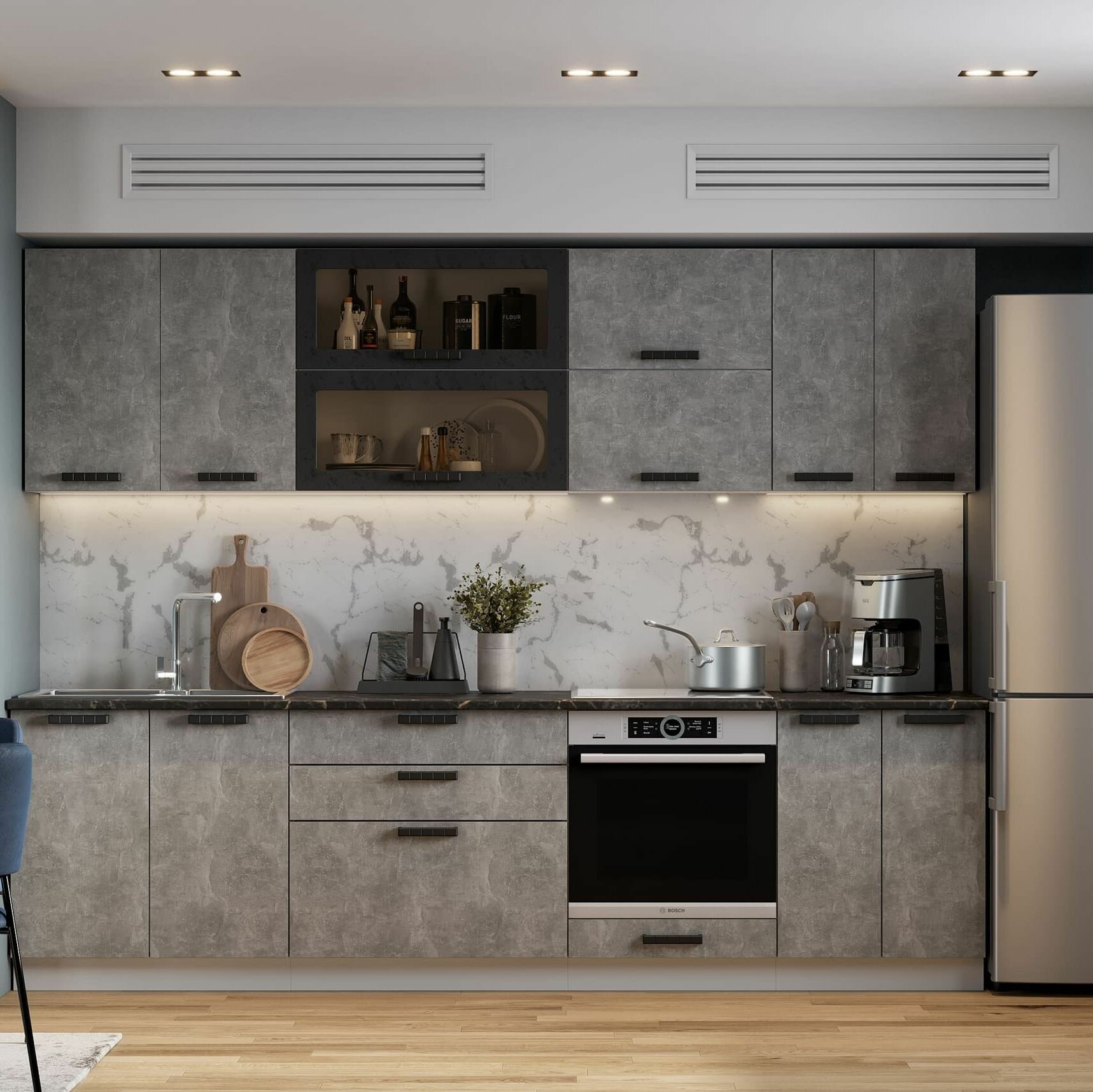 Кухонный шкаф напольный без столешницы Бетоны ШН3Я 400 Белый / Бетон графит