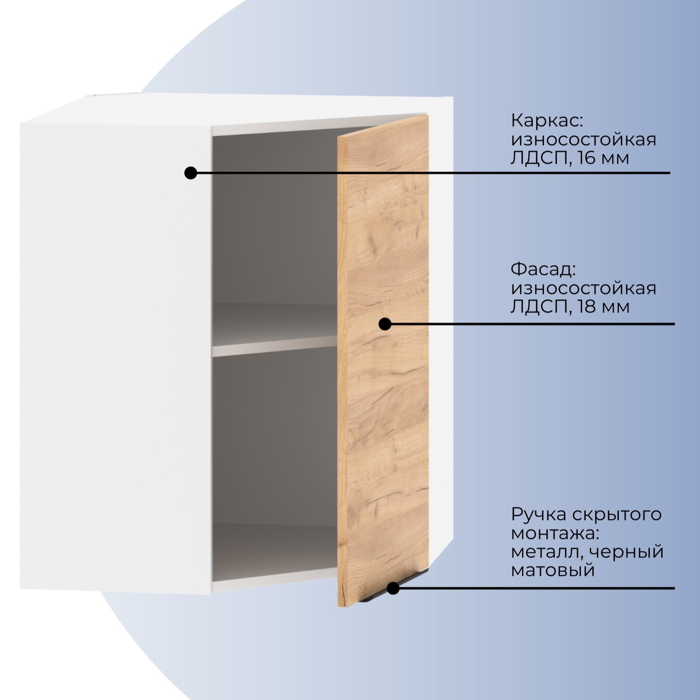 Шкаф кухонный угловой навесной с полкой ALVALINE CORSICA MCHP 6072.1A, дуб бофорд/белый, 60х60х72 см: сравнение цен, характеристики, фото, актуальное наличие и цены.