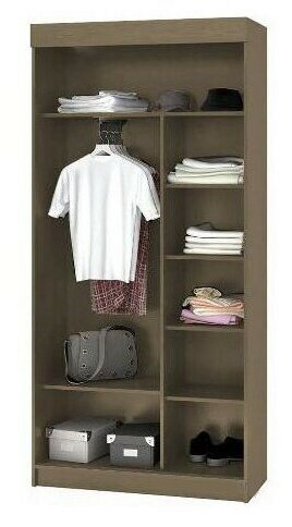 Шкаф-купе для одежды, размеры 1000х2100х416 мм, корпус ЛДСП венге, фасад ЛДСП дуб белфорт.