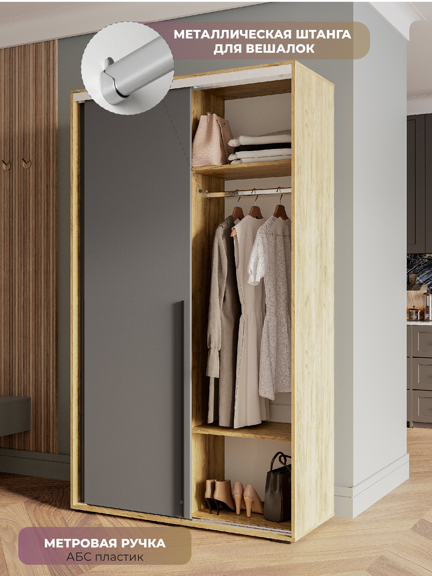 Шкаф-купе Мебелони раздвижной для одежды представляет собой идеальный выбор для стильного и удобного хранения вещей в любом интерьере. Большой деревянный шифоньер привнесет особый шарм в ваш дом, одновременно предоставляя функциональность и стиль.