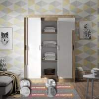 Изготовленный из качественного ЛДСП материала, этот напольный шкаф обладает прочностью и долговечностью. Система организации позволяет легко структурировать место внутри: полочки для белья, просторное отделение с вешалкой в виде штанги для верхней одежды и полки для обуви обеспечивают удобный доступ к вашим вещам.