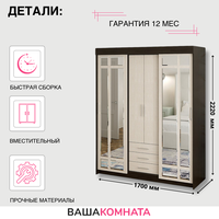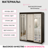 Шкаф купе многофункциональный современный с зеркалом и ящиками поможет воплотить Ваши мечты о стильном интерьере спальни, гостиной, кухни, прихожей, коридора, детской, хостела, гостиницы, общежития и дачи. Раздвижной шкаф купе с широкими и глубокими полками для хранения одежды, вещей, обуви и штангой для вешалок станет отличным выбором мебели для тех, кто ценит качество и эргономичность. Купейные шкафы не требуют дополнительного пространства для открывания дверей, при этом представляют удобный доступ и широкий обзор содержимого мебели. Корпус и фасады выполнены из ЛДСП, фурнитура от проверенных фабрик.