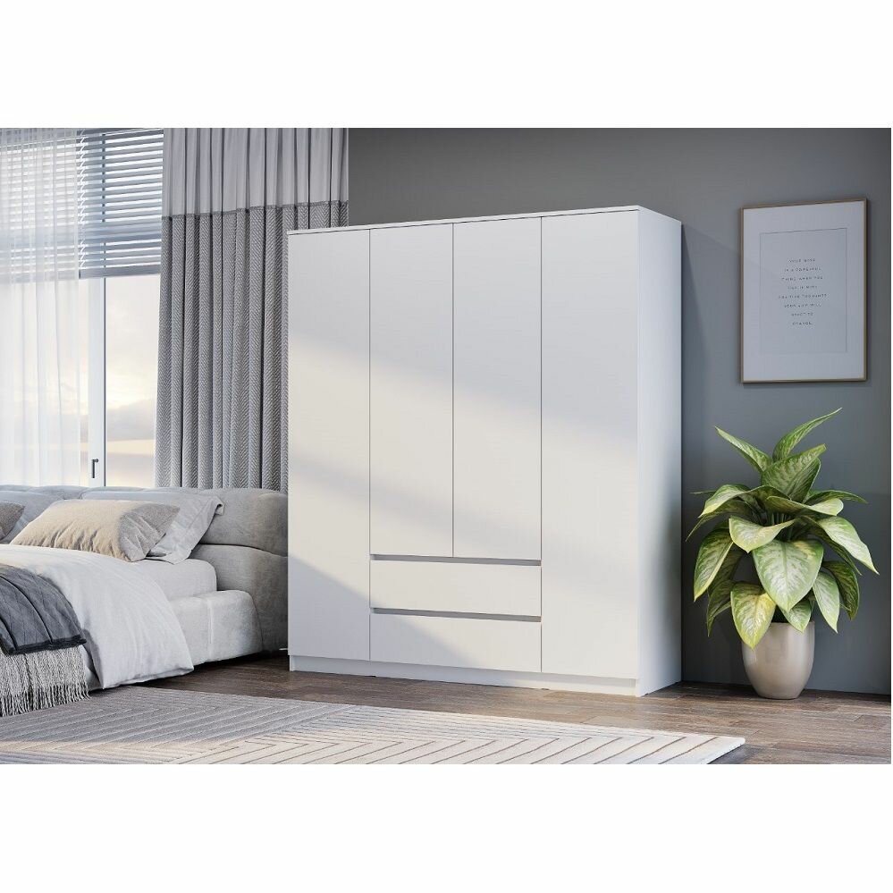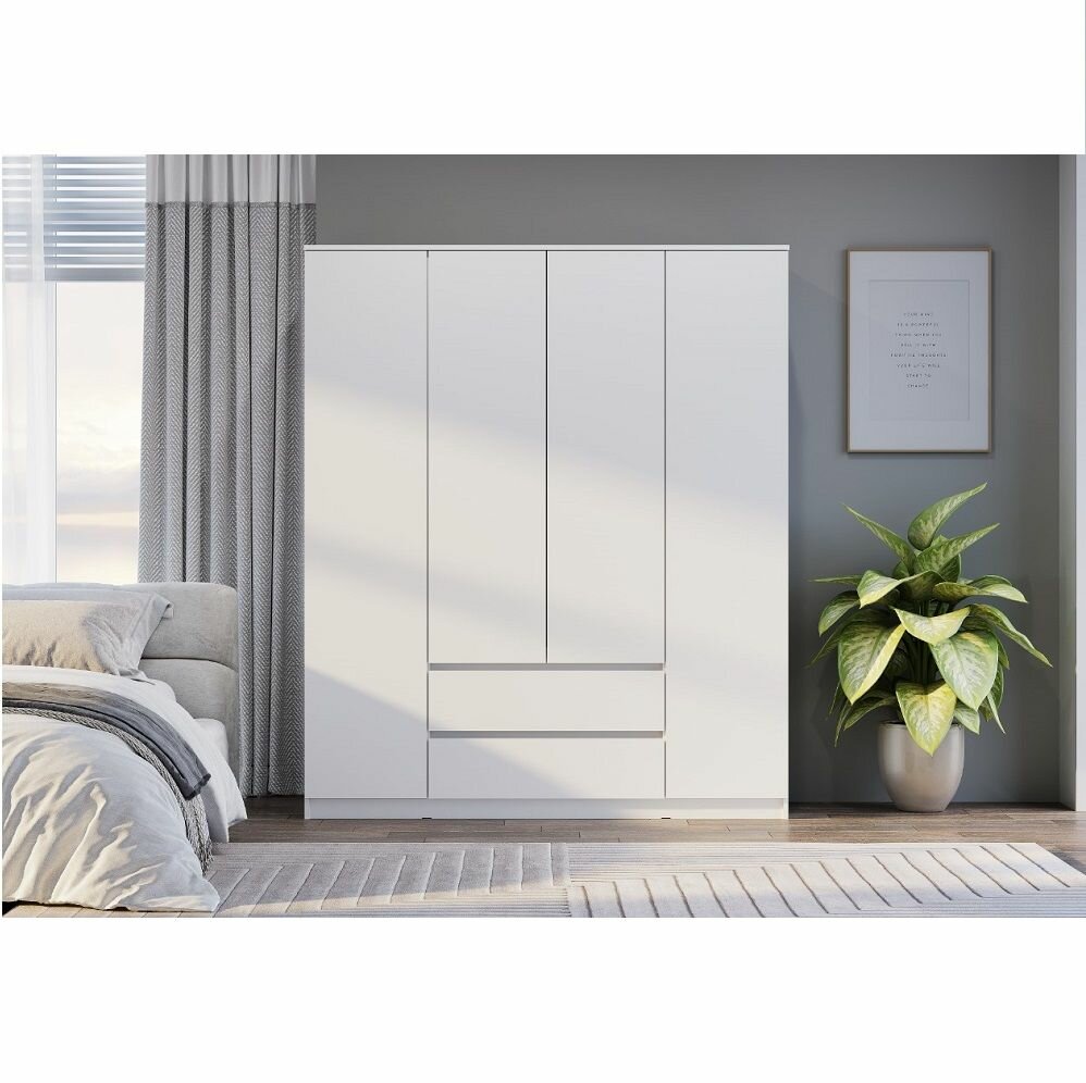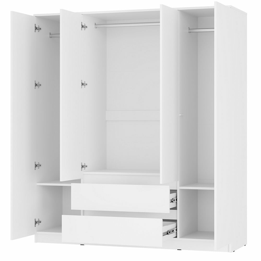 Шкаф 4-х створчатый Симпл ШК-13 Белый отличается стильным дизайном и высоким качеством материалов. Белый цвет корпуса и фасада придает шкафу легкость и свежесть, делая его отличным дополнением к любому интерьеру.