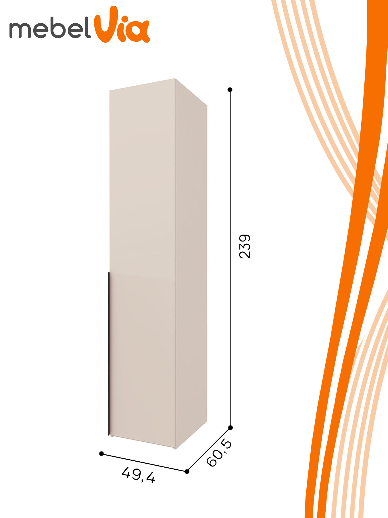 Шкаф имеет размеры 239.0 см в высоту, 60.5 см в глубину и 49.4 см в ширину. Это позволяет разместить его даже в небольших помещениях, не занимая много места.