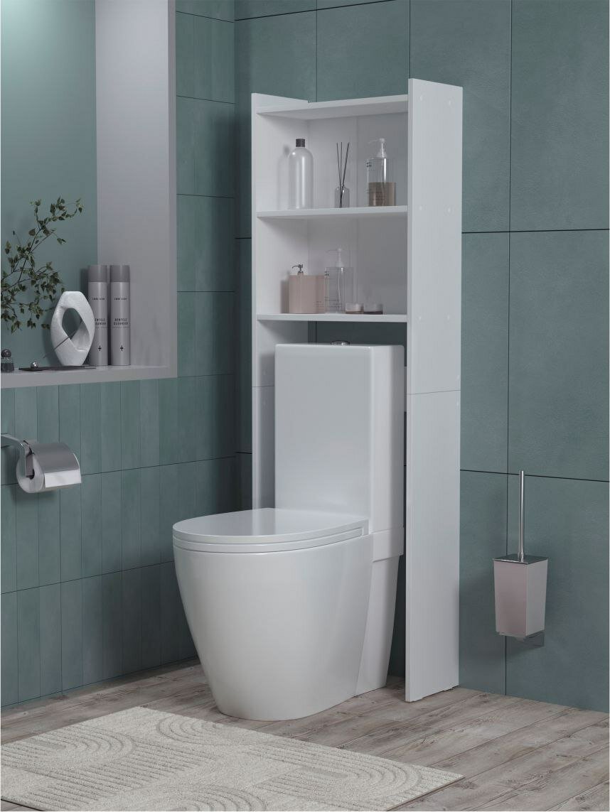 Купить Шкаф-надстройка над унитазом и над стиральной машиной, напольный, ЛДСП, белый, матовая поверхность с доставкой по всей России.