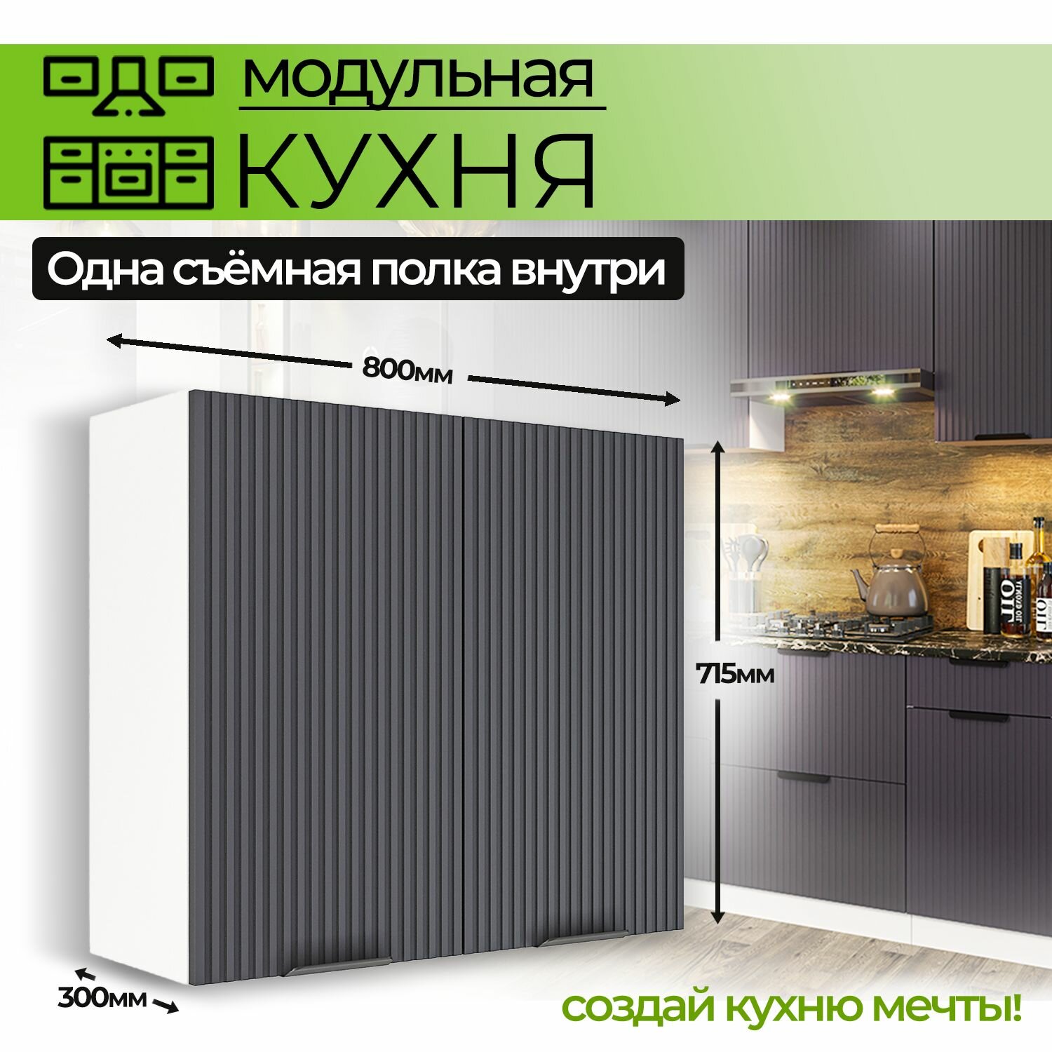 Шкаф настенный 2-дверный 800 мм Модульная кухня Nord Line цвет фасада графит: сравнение цен, характеристики, фото, актуальное наличие и цены.